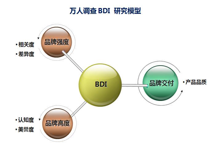 在品牌研究方面,我們在Y&R的BAV(Brand Asset Valuator)的指標基礎上建立了企業品牌成長指數(BDI,Brand Development Index)研究模型,它代表著品牌的發展現狀、發展前景和交付質量等,能夠幫助企業衡量和評價該品牌所處的成長周期和品牌地位,并通過長期序列數據來判斷該品牌未來可持續發展的能力。該模型還能針對集團性企業,清晰、規范地管理多個產業,同時幫助企業尋找各個產業之間的共性,以便集團在不同產業之間合理、有效地分配資源,尋求最大化效益,從而實現企業的快速成長。