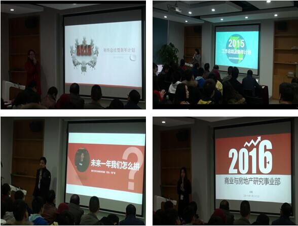 會(huì)上,各事業(yè)部及各子公司就2015年的工作進(jìn)行了總結(jié)匯報(bào),并對(duì)2016年度的工作制定了明確的目標(biāo)。研究中心總監(jiān)周群利、項(xiàng)目管理中心總監(jiān)李香香分別就兩大中心的現(xiàn)狀及未來(lái)發(fā)展,站在公司人才發(fā)展及業(yè)務(wù)發(fā)展方向的層面,做出了高屋建瓴的闡述和展望。各集團(tuán)各事業(yè)部、子公司總結(jié)后,公司總經(jīng)理賈琤進(jìn)行了年度工作總結(jié)點(diǎn)評(píng),站在公司企業(yè)文化、發(fā)展理念的角度,向所有與會(huì)員工表達(dá)了對(duì)各員工、各部門及公司未來(lái)發(fā)展的期望與祝福。
