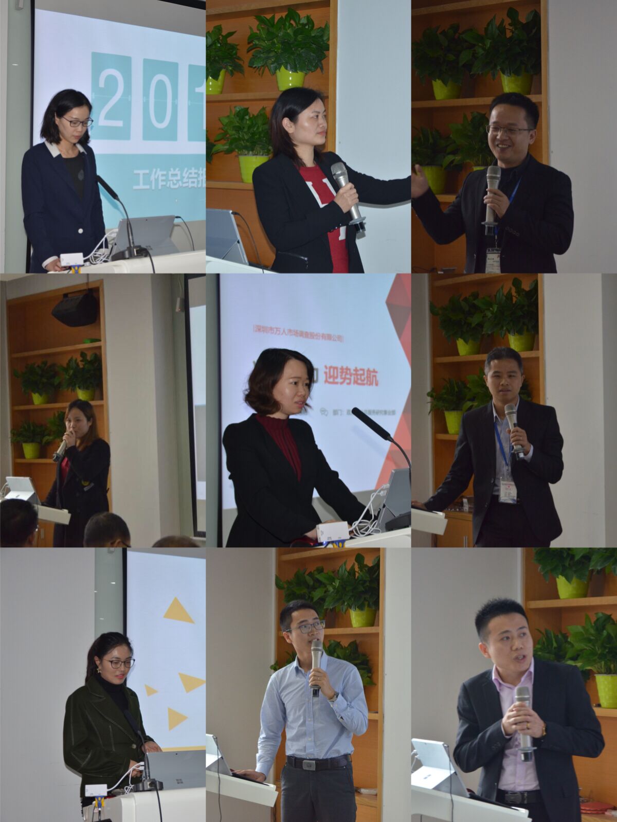 2018年,在國際貿易戰此起彼伏,國內經濟持續下調的嚴峻形勢下,公司圓滿地完成了各項目標,業務能力不斷提高,團隊能力得到加強,公司實力得到提升,這些都與每位員工的努力分不開。會上各事業部總經理、執行經理、財務經理、各分公司及子公司依次對2018年度部門工作進行了總結匯報,就2018年度目標業績完成情況以及工作中的成就與不足進行了分析,并制定了2019年的目標與計劃。項目管理中心總經理李香香、研究中心總監周群利分別對兩大業務中心的現狀及未來發展進行了闡述與展望,同時宣讀了《萬人調查集團2019年經濟工作會議決議》。