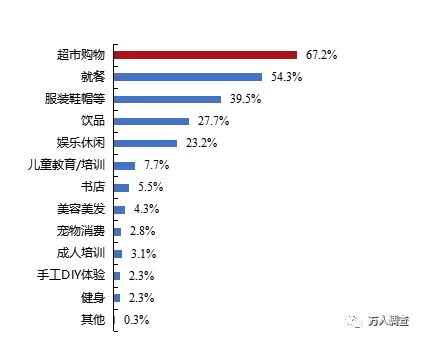 根據調查結果顯示,2020年深圳市民去商場的消費排名前三的品類為超市購物(67.2%)、就餐(54.3%)、服裝鞋帽等(39.5%),值得注意的是飲品消費占比今年有很大提高。