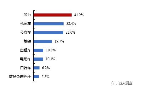 與2018年相同,2020年深圳市民仍主要采取步行的方式前往經常光顧的商場,占比超過四成,遠超過其他交通方式。
